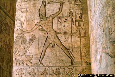 All walls in this hall are decorated with reliefs of the Pharaoh fighting against his enemies. It seems that Ramses II was very grateful to the gods Amun-Re and Re-Harakhte for helping him kill so many Nubians, Hittites and Syriansthis.