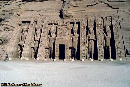 This temple was carved into the rock to honor the wife of the Sun God, the goddess Hathor. Ramses II, probably, wanted to draw a parallelism between he and his wife, and Ra and his wife, Hathor.