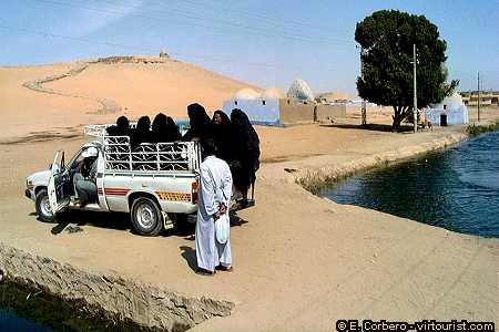 The first Nubian houses are a few yards from here, but the Nubian village is several miles long. The best way to get there is by taxi. You can also rent a camel or a donkey if you want. The pick up you see in the photo is for locals only. I tried to get in one of them, but the police does not allow it.