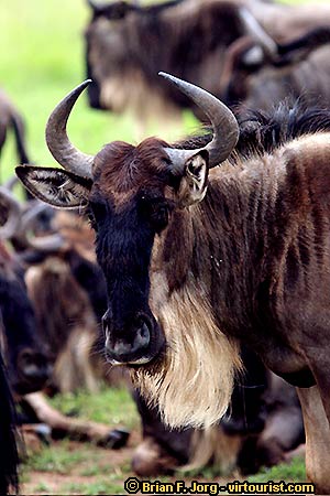 Wildebeest are always on the move to find favorable grass and water. Numbering around one and a half million, this African antelope can be found in huge numbers during the annual migration.