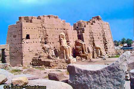 The main temple goes from West to East. More than 10 pylons separated the temple's main halls. The ones in the temple's walls, are numbered from one (most recent) to six. And the ones in the perpendicular axle from seven to ten.