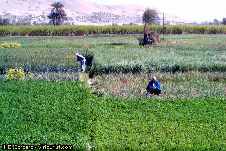 These fields are next to the first ruin we will visit on this side of the Nile river, the Colossi of Memnon ...