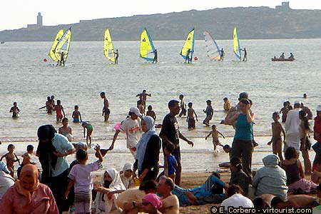 What has made Essaouira worldwide famous is its wind. The strong wind that usually blows in the bay has attracted wind surfers from all over Europe -- and beyond. If you want to try the wind surf, there are some surf schools at the beach. If you are an experienced wind surfer you may appreciate more the strong winds that blow in the beaches south of Essaouira. Later I will show you a beach famous for its wind.