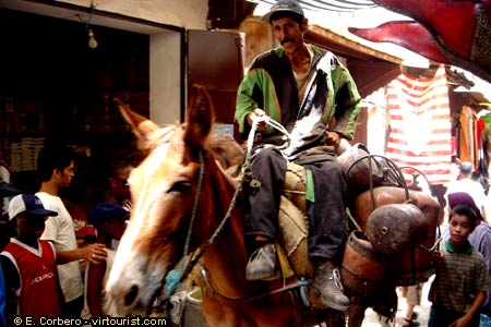 The medina of Fez is reserved to pedestrians, but from time to time you will have to give way to the donkeys and horses. It is pretty amazing how the owners of these beasts find a way to pass through the overcrowded streets.