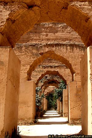 Although the Royal stables are not very well preserved, they are an impressive sight. They were built to keep 12,000 horses. Unfortunately the 18th century earthquake tore down its roof. Nowadays foliage has taken most part of the stables. Nevertheless, this is one of Meknes highlights.