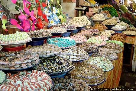 In the market you will also find many cakes for sale. Morocco is renowned for its sweet deserts.