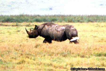 The favorite place for an egret is sitting on the back of a rhino, picking at the insects. They frequently share space with smaller dark birds called tick pickers.