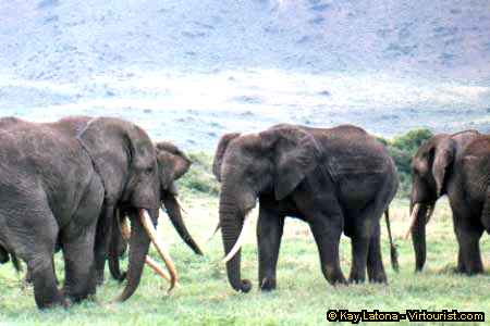 These old ladies have probably lived together in the same herd for decades. If you are interested in knowing more about elephants, go to: The Elephants of Africa, which is a site about NATURE. If you are interested in the fight to save the ban on ivory (look at this old lady -- can't you just imagine what some poacher would do to get a set of tusks like that! -- go here: CITES Elephant Crisis Section.