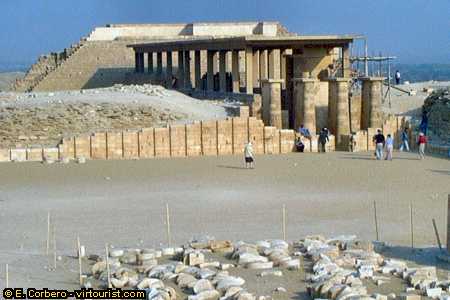 The complex of Saqqara is huge. There are so many interesting things to see here that a complete visit to this area could take several days. Most probably you will only have a few hours to visit it. The things you should not miss are: the pyramid of Zoser (the one we saw on the previous photo, on our left), the hypostyle hall (in this photo), the funerary temple of Zoser (behind the pyramid), the Teti pyramid, the Serapeum (with more than 25 sarcophagus) and the tombs of Akhi -Hotep and Ptah-Hotep.