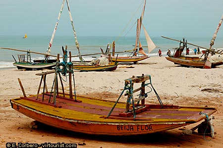In the center of Canoa Quebrada we find shops, bars, and restaurants. Most of the houses in town are hotels and hostels.
