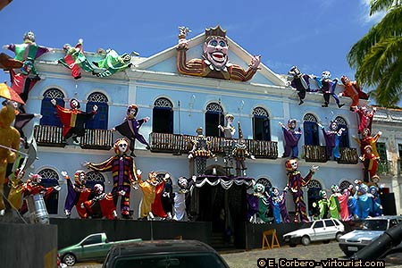The Town Hall is located on a nice square. In this picture you can see the building with some of the puppets used during Olinda's Carnival.