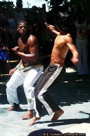 Capoeira is a dance with African origins, very popular among the poorest neighborhoods in Brazil. In a Capoeira dance, two opponents fight following the rhythm of the local music. Usually this martial art is practiced without weapons, but there are also Capoeira dances where knives are used. When weapons are used, the dance is even more spectacular.