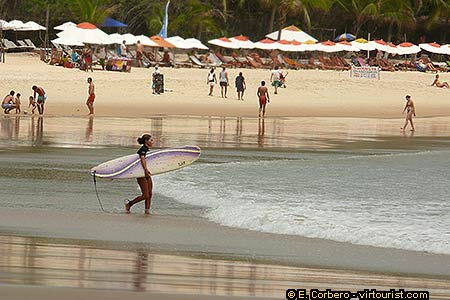 Madeiro Beach is a few miles long beautiful stretch of white sand in the shape of a half moon. The beach is big, and not very crowded. On the beach you will find some tourist facilities. If you are looking for a quiet beach, Madeiro is your best option.
