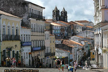 Walking along the cobbled stone streets, surrounded by colorful colonial houses (which now host restaurants, hotels and shops), you will get to a big street; and from there, to one of the most beautiful places in Salvador, Largo do Pelourinho or Pillory Square.