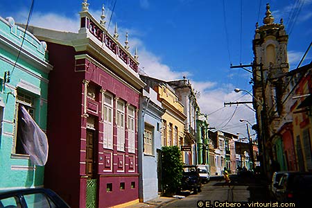 In this picture you can see a street in Largo do Carmo, with its colorful houses.