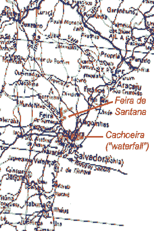 The map shows the location of Cachoeira, a lovely small town that shows the essence of Northeast Brazil.