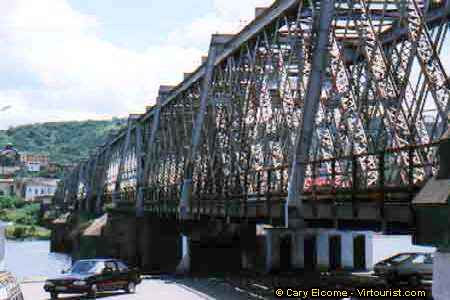 This bridge connects São Felix with Cachoeira. A lot of Brazilian railways have stopped. They had beautiful routes, so it's sad that the bridges are falling apart. It's similar to abandoned routes in the USA.