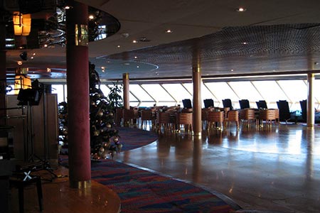 Bored on a cruise? No way! There are so many activities offered, that there is sure to be something interesting for everyone. Here, in the Crow's Nest, they had dance classes and game shows, not to mention evening entertainment and a splendid view of the sea ahead. Food is included in the price of the cruise, but alcoholic beverages are not.