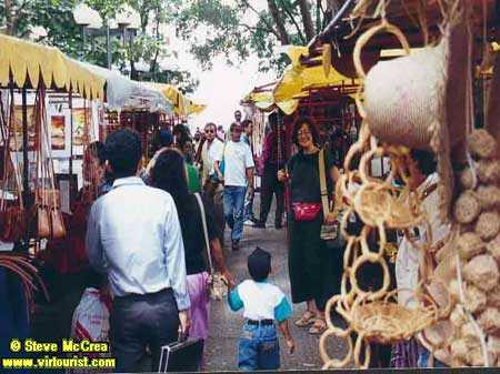 Can you see Janus in the marketplace? She will guide us to the best deals (and then we will carry them to our rented car). Parking is easy in this small capital and we can stop any time for a small snack or drink at a "sodita" (a little soda stand). Do you hear music? I think it is Peruvian flute music, so lets walk over to the other side of the central square [Next »]