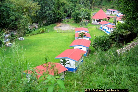In the picture you can see a tourist resort with nice cabinas on the outskirts of La Fortuna.