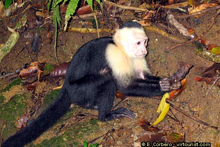 The white faced capuchins are among the wisest monkeys. You will find them jumping from branch to branch, and playing on the trails. They have no problem getting close to tourists. They are curious creatures, and they know humans bring food in their bags. You should never trust a nice looking capuchin, it will steal your bag in almost no time if you are distracted.