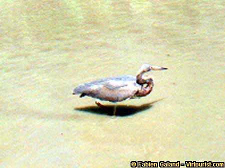 This looks like a small version of the bird we just saw, but it is a different species. It has the same long neck that can bend in the shape of a large "S" but the tip of the beak is black and the head is rounded on the top (the larger heron has a flat head).