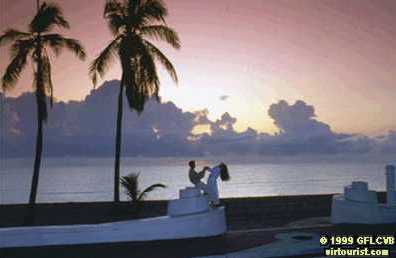 Let's talk about the wall. It is famous for rollerbladers, who use the edge of the wall for their balancing acts. People bicycle, rollerblade, cruise and jog along this beach wall. A fiber optic cable runs along the edge of the wall and projects a colored light to give the edge of the wall a new color every five to seven seconds. The wall stretches from Sunrise Blvd. south to the Yankee Clipper Hotel (about 3 miles or 5 km). Please don't destroy the wall's edge when you jump on it! (The City of Fort Lauderdale spends $100,000 each year to repair and paint the wall.) If you bring your skates to travel on this ocean drive (called A-1-A because it is the Alternative to route 1, which runs from New England down to Key West).