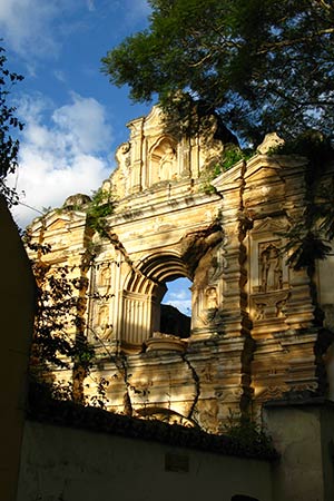 The Iglesia de Santa Rosa de Lima was originally constructed in 1570, and in 1766 became a convent. Unfortunately a few years later the devastating earthquake destroyed the building. Today only the facade remains. Observe the cracks in the picture, experts say it is a miracle the construction has survived that long.