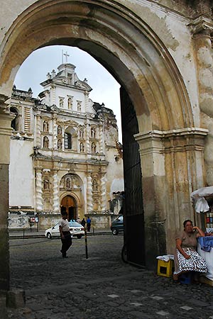 The church of San Francisco lies behind the gates in the picture. The building was half destroyed during the big earthquake, but was partially reconstructed. Today the interior of the church is in perfect condition, and on Sundays hosts a mass.