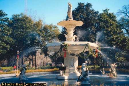 This magnificent fountain is located in Forsyth Park and resembles the one in the Place de la Concorde in Paris. The Confederate monument is close by. Many movies have been filmed in Savannah. Forest Gump and Midnight in the Garden of Good and Evil to name but two.