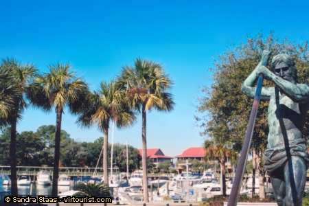 Back on the island after sightseeing and ready to relax and contemplate the beautiful marina at Shelter Cove. In the summer months, Shelter Cove hosts the weekly firework display that entertains both young and old. Several good restaurants and shops here. The buildings with the red roofs in the background is the Disney Complex.