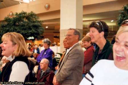 Whats so funny?! Happy people in the mall just keep smiling and laughing.