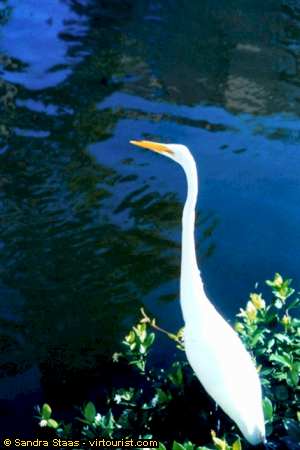 Contented egret contemplates the lagoon. Turtles usually hang out in the lagoons too.