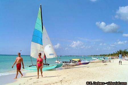 South of downtown is West End. In this area are some small hotels and cottages. West End is famous for its rocky cliffs and for its azure waters. This is a more laid back place than Long Beach. We will later visit this area, now we will walk along this white sand and blue waters beach.