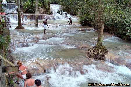 In the Dunn's River Falls you will find a snack bar, souvenir shops and everything else you need to spend the day. At the park's main exit gate there is a crafts market with several dozens souvenir huts. It is a sort of a tourist trap. When you leave the falls, you do have to walk along the gift huts. But do not worry, sellers are nice. If you say you do not want to buy anything, they will not insist. But be warned: they will use all the tactics they know to sell you something. Most of the times they succeed ...