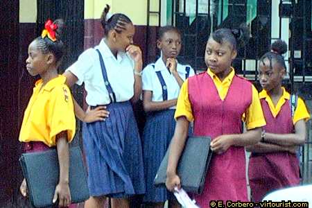 In the picture you can see some school girls. Jamaica is full of young students with their uniforms. Although local population is not rich, all parents want their children to have a good education.