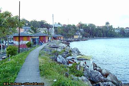 In this picture you can see part of East Harbor Bay. The huts you see on the left are fast food and drinks shops. Collective taxis wait for customers in front of these huts. When they have enough passengers they leave. It usually takes just a few minutes for the taxi to fill. Just take it easy. This is Jamaica after all ... You can buy a drink in one of the shops while you wait for your taxi to leave.