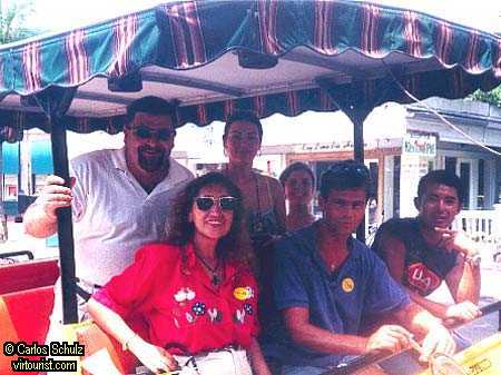 The best way to start Saturday is with a tour. Here you see my friend Carlos with some of my students as we went on this propane-powered jeep that was retrofitted to look like a train. The clean-burning gas reminds me of a barbecue! The tour runs past the Hemingway House, the southernmost point and the cemetery (where the caskets are entombed above ground because there's salt water just a few feet underground).