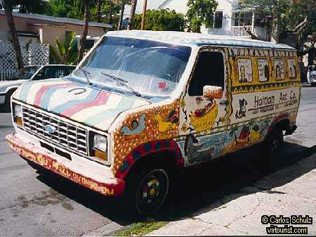 Among the scores of art galleries in Key West, this one is dedicated to Haitian art. The cooling breezes that blow off the Gulf down Front Street are soothing to our ankles as we wander between suspended paintings. The gallery has two walls of window doors that are left open during the winter and spring. It's like visiting an art museum without an entrance fee. Well, let's go buy a souvenir on Duval Street.