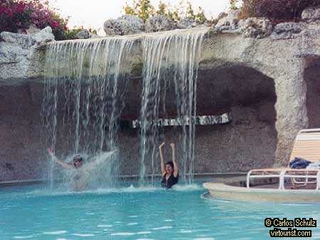In Key Largo you can find several hotels with a pool (just use the restroom, put on your swimsuit under your clothes, walk past the reception area and say that you want a quick look around the hotel then jump in).