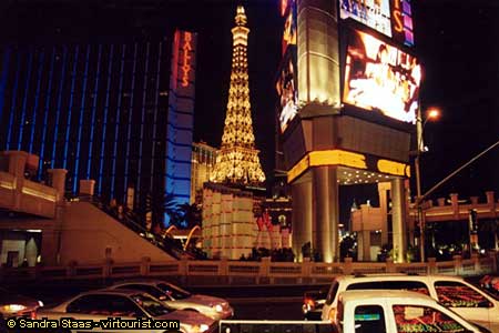 Yes, that's the Eiffel Tower you see. The Paris Hotel-Casino is so very French. Try saying that with a French accent. Replicas of the Eiffel Tower and the Arc de Triomphe take on monumental proportions and confuse one. Are we in the United States? Or did we somehow travel to France just by crossing the street? Boutiques, fine dining on le Boulevard entice one and all to enter, even if you're not a gambler.
