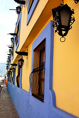One of the city's main attractions are its cobbled stone streets, surrounded by colorful houses. In the picture you can see the facade of one of these houses.