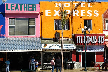 In order to get to the tourist area of Tijuana, Avenida Revolucion (Picture on the right), you can take a taxi, a public bus or walk. There are two types of taxis, the not-metered ones (Yellow Taxis) and the metered ones (Taxi Libres). The metered ones are cheaper. If you want to try the bus, the cheapest option to get to downtown Tijuana besides walking, look for a bus with the "Centro" destination written on the front. If you want to walk, Avenida Revolucion is about 20 minutes from the border.