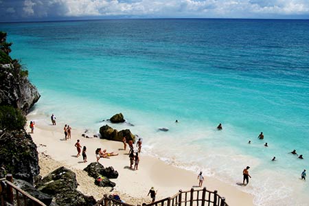 Below the Castle there is a nice beach where many visitors enjoy a swim in the year-round warm waters of the Mexican Caribbean Sea.