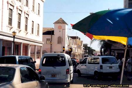 Bay Street in downtown Nassau is the main artery and nerve center of town. It is often jammed with vehicles, but the traffic is diverted whenever there is one of the many colorful and boisterous parades, the most famous of these being the Junkanoo African dance festival, accompanied by goombay drums and cowbells. Surprisingly, the music played by the brass bands often consists of rhythmic renderings of Christian hymns.