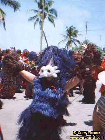 This fellow appears to be entranced! Notice the white mask that is part of the costume. The dancer was part of the parade from Maranhão.