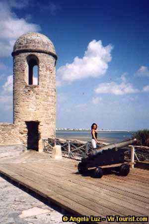 I think that this is a large wall - what do you think? My friend Edilma is showing us how small people are next to the tower where soldiers used to watch for the enemy. I like the cannon, too. Let me take your photo next to the wall.
