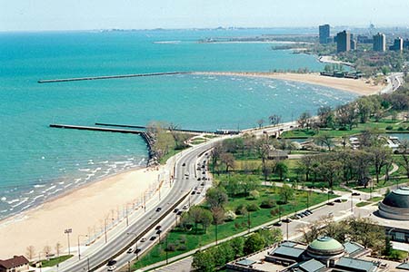 Chicago lies in the north-central part of the United States, on the shores of Lake Michigan, a massive freshwater body larger than the country of Croatia. Many of the city's most popular destinations, including its beaches, lie along the Lakefront.