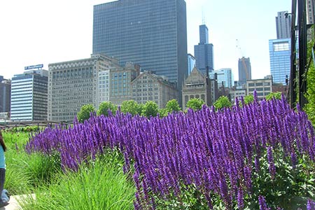 Here we are in a garden at Millennium Park. Millennium Park occupies the northwest portion of Grant Park, Chicago's "Front Yard" bordering the lake.
