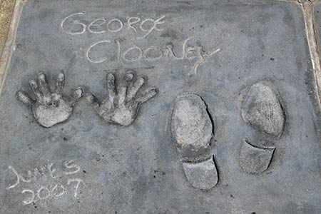 Movie stars started leaving their marks on the cement in 1927. Since then, being featured here is one of the highest recognitions a movie star can get. In the picture you can see the hand prints and foot prints of George Clooney.